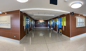 The 80,000 square foot Victor Yacktman Children's Pavilion is the site of outpatient pediatric services at Advocate Children's Hospital. The pavilion is linked by an indoor walkway to the Advocate Children's Hospital inpatient units. Interactive art, sculptures, and bright geometric patterns create a kaleidoscope effect throughout the interior of the Pavilion, providing comfort for children and their families. At Yacktman, we care for over 16,000 children, representing diverse cultural, ethnic and socioeconomic backgrounds.